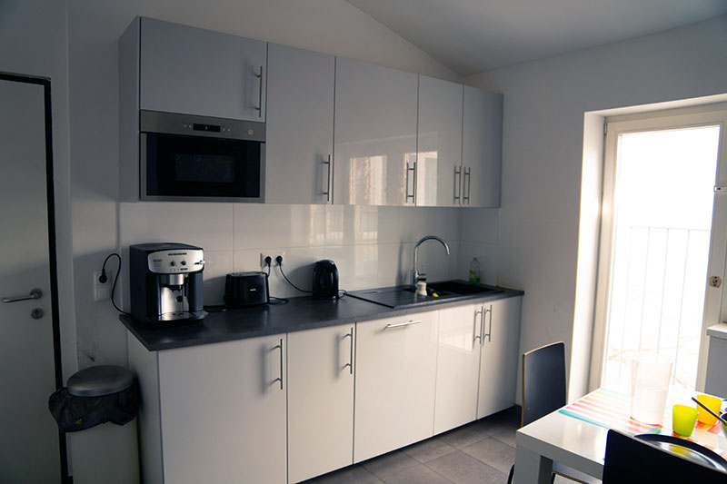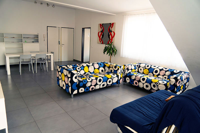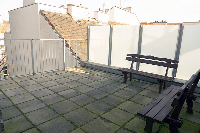 Das Dachgeschoß in einem mehrstöckigen Lifthaus bietet mit 380 qm ausreichend Platz für die Betreuung von 10 Jugendlichen. Es stehen Einzelzimmer zum Teil mit Vorraum und eigenem Bad/WC, ein Wohnraum, eine Küche und zwei Betreuerzimmer mit Vorraum und Bad/WC zur Verfügung. Die Räume sind zentral von einem großen Gang aus begehbar. Als Highlight bietet sich eine große Terrasse zum Verweilen an.