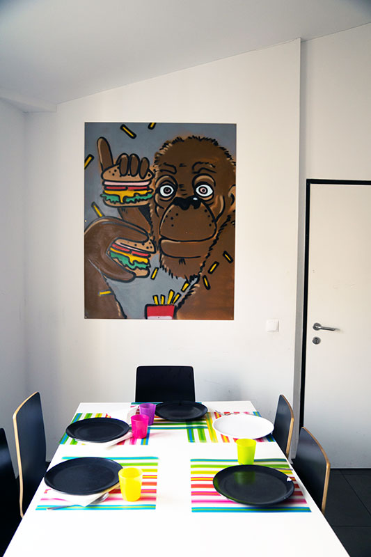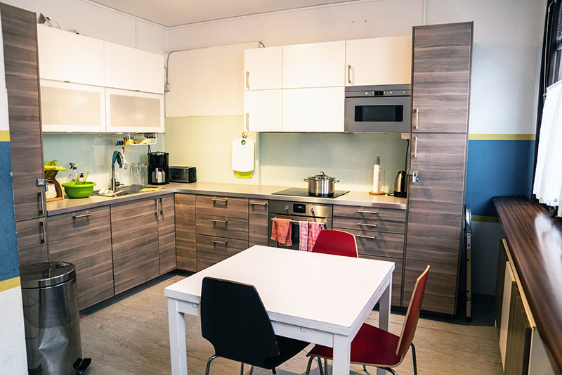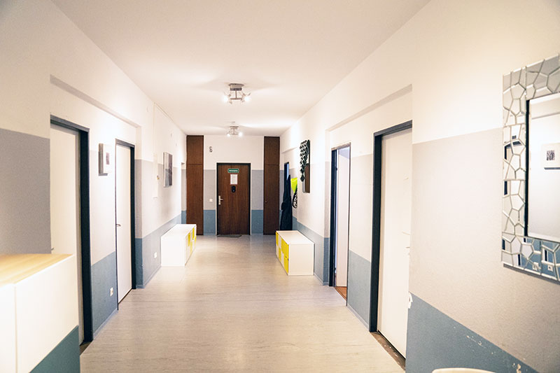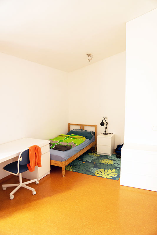 Eine Etage in einem mehrstöckigen Lifthaus bietet mit 266 qm ausreichend Platz für die Betreuung von 9 jungen Menschen. Es stehen Einzelzimmer, ein Wohnraum, ein Mehrzweckraum, eine Wohnküche, zwei Bad/WC- Einheiten, sowie ein Betreuerzimmer mit integrierter Nasszelle zur Verfügung. Die Räume sind zentral von einem großen Vorraum aus begehbar.
